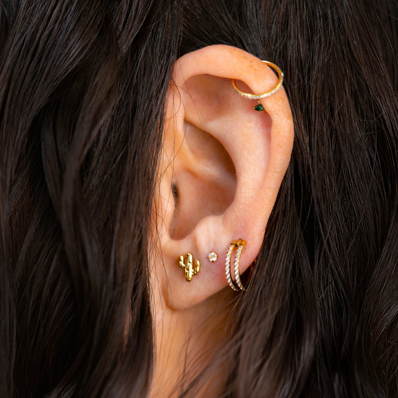 Kommer i gull eller sølv, og passer perfekt til conch, helix, øreflipp eller tragus. Og for hverdagsbruk? Lettvektig. Skiller den seg ut? Dobbelt så mye.