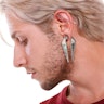 En hanger er, som navnet nesten sier, noe som henger. En hanger er også karakterisert ved at det ikke er tilgjengelig i veldig mange størrelser, da det ikke er selve delen som går gjennom øret som er dekorasjonen (som for en vanlig plugg eller tunnel), men heller den som henger. Derfor kan dette smykket brukes hvis du har et hull i øret på minst 10 mm. Jo større hull du har, jo mer vil det henge. Og selv om hullet ditt er f.eks. 20 mm. Smykket faller ikke ut på grunn av designet. Her er det en keyhole, der snittet i midten av smykkene har samme form som et nøkkelhull. På hver side av nøkkelhullet er en abalonstav. Det samme er på den andre siden, slik at du kan bruke smykkene i både høyre og venstre øre. Siden abalone er et naturlig materiale, bør du forvente forskjeller i innleggene.