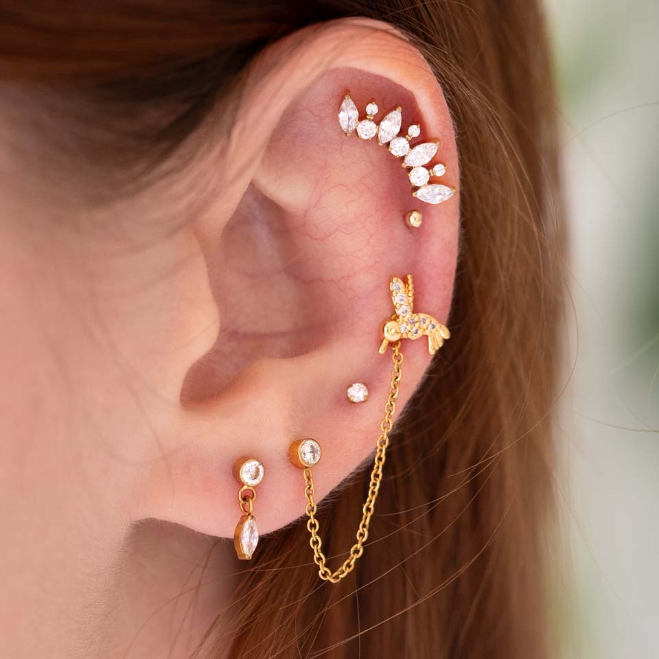 Plassering: Tragus, Spiderbite, Snakebite, Medusa, Madonna, Lower labret, Øreflipp, Helix, Conch, Forward helix, Angelbite