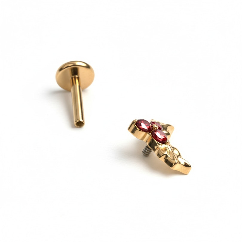 Laget av ASTM F136-titan med gullfarget PVS- belegg er den både allergivennlig, vanntett og klar for hverdagsbruk. Den innvendige gjengen gjør innsettingen smidig og sørger for at smykket sitter sikkert der det skal.