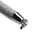 Verktøyet har fire slanke klør som åpner seg fra tuppen når du trykker, og kan holde mellom 3 og 6 mm mens du skrur den på barbellen, ringen eller labretstaven. Pass bare på at hullet eller gjengene på kulen vender utover, det er nemlig slik magien utfolder seg.