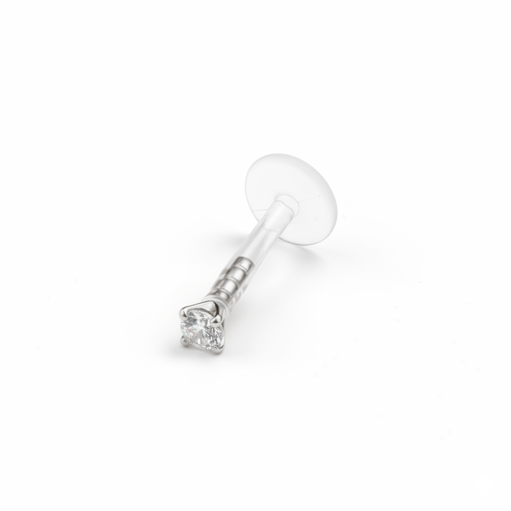 Toppen av labretten er laget av det eksklusive matariale 14 karat gull. Smykket finnes i de tre forskjellige gulltypene hvitt gull, rosegull og vanlig gull. I alle tre fargene sitter en liten klar fasettslipt sten. Denne stenen blir vanligvis brukt som erstatning for en diamant, siden den på samme måte reflekterer lyset i sine små fasetter, og kaster lyset tilbake, så det gir et flott skjær og skaffer din piercing ekstra mye oppmerksomhet. Også størrelsen på stenen kan du selv velge, alt etter hvor mye oppmerksomhet du vil tiltrekke din piercing.