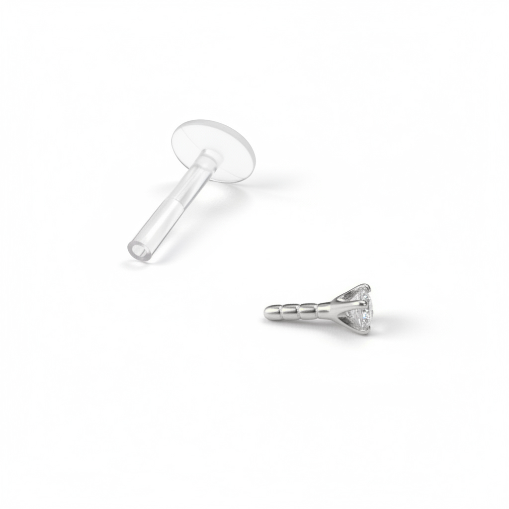 Navn: Labret af 14 karat guld med rund sten og ptfe stav