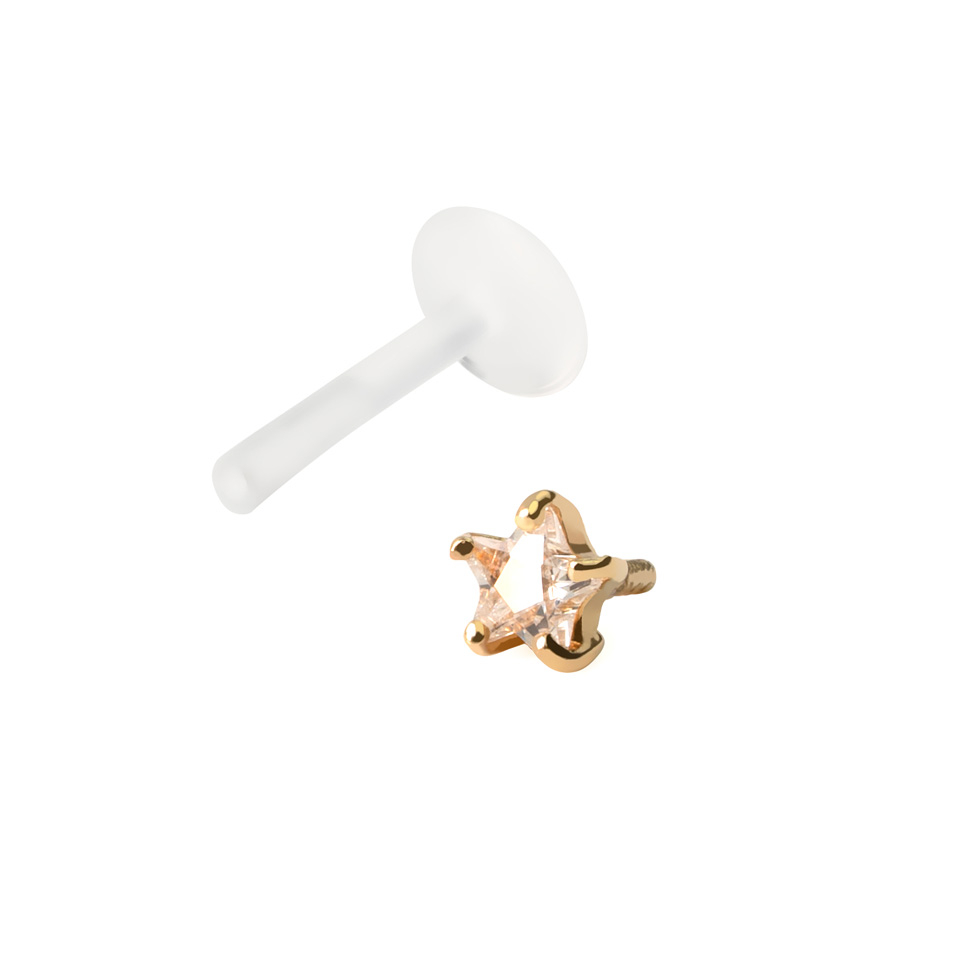Labret av 14 karat gull med stjerneformet sten og ptfe stav