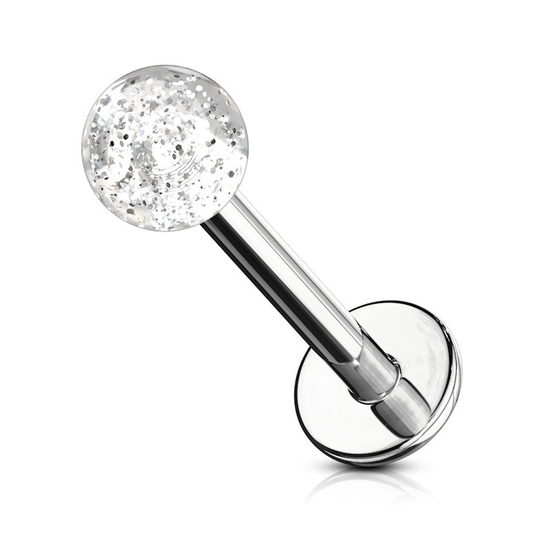 Superfrekk labret piercing i kirurgisk stål med liten akrylkule.