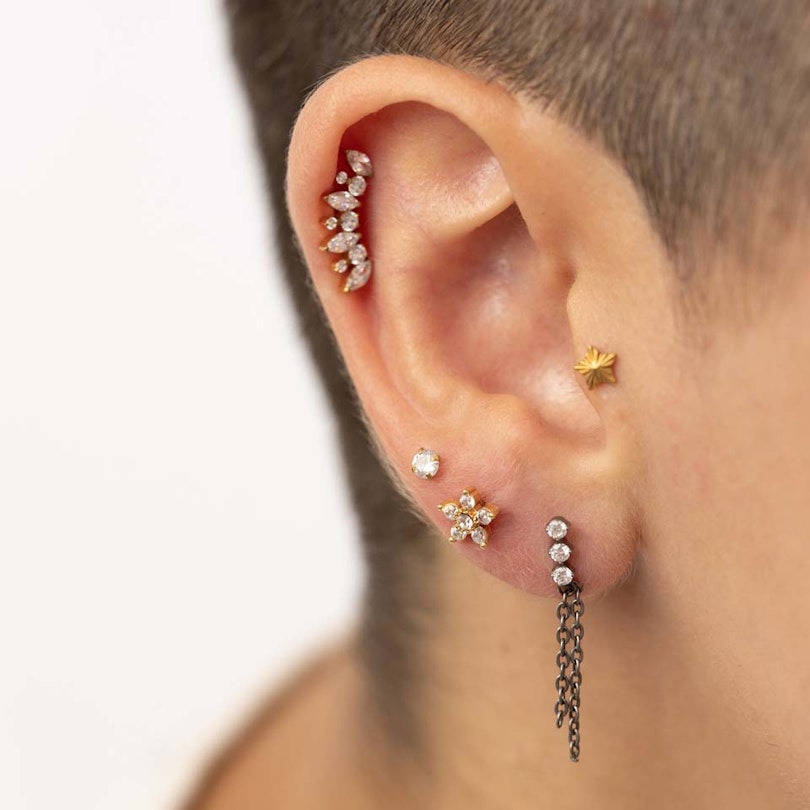 Plassering: Tragus, Spiderbite, Snakebite, Medusa, Madonna, Lower labret, Øreflipp, Helix, Conch, Forward helix, Angelbite