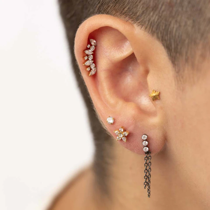 Plassering: Tragus, Spiderbite, Snakebite, Medusa, Madonna, Lower labret, Øreflipp, Helix, Conch, Forward helix, Angelbite