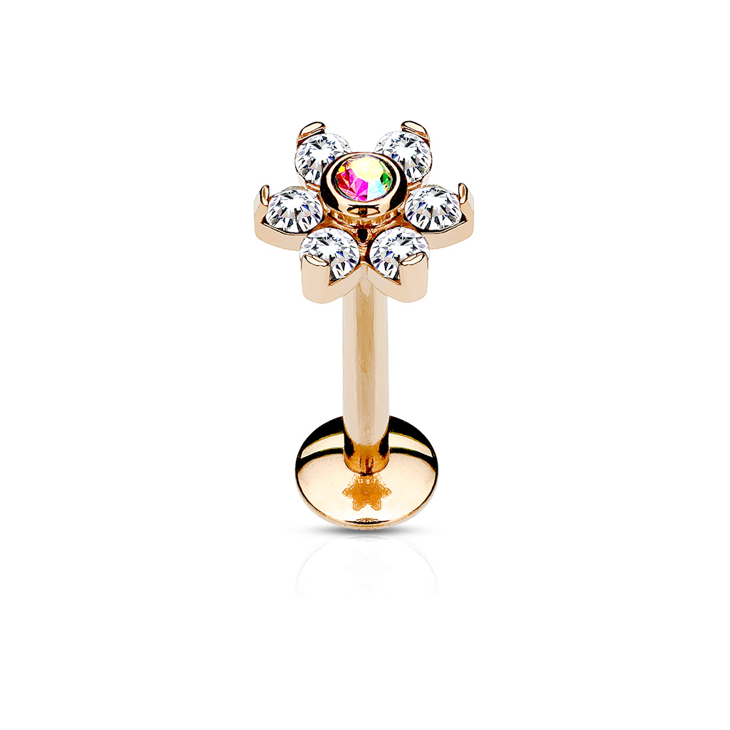 Labret med blomst og innvendig gjenge-Roségull-Aurora Borealis