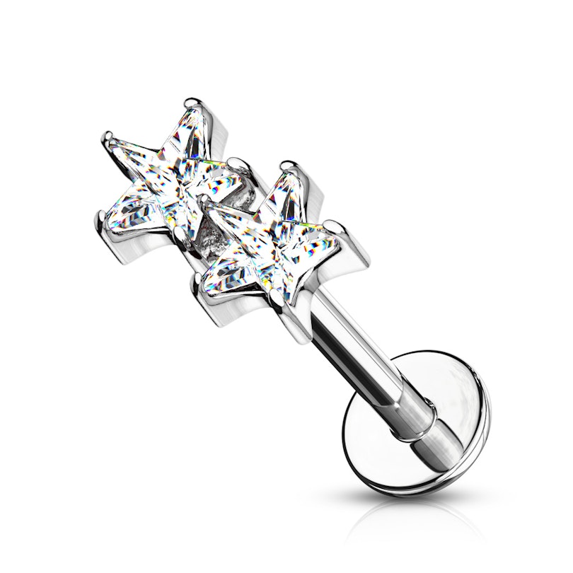 Labret med innvendig gjenge og 2 CZ-stjerner