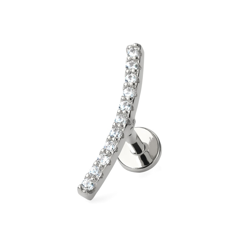 Dette må være en av de litt mer opsiktsvekkende labretene. Det er i hverfall vanskelig å ikke legge merke til dette smykket med sin lange stenbelagte bue.