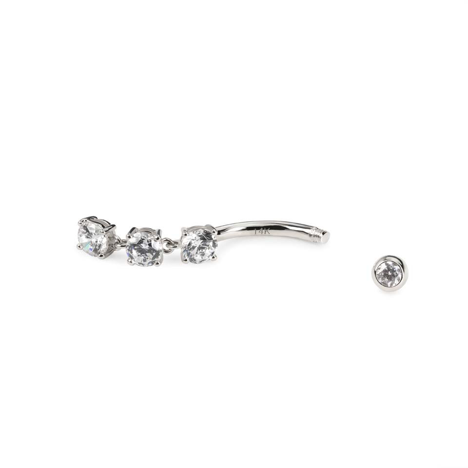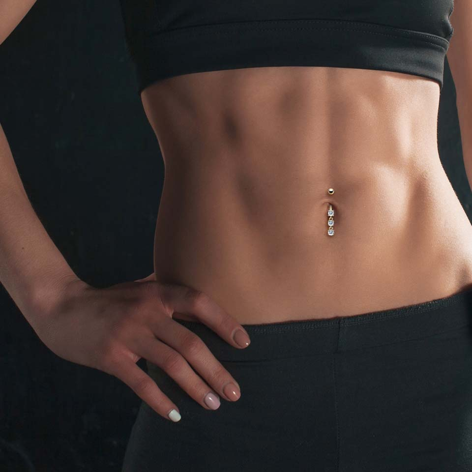 Navn: Navlepiercing av 14 karat gull med tre stener