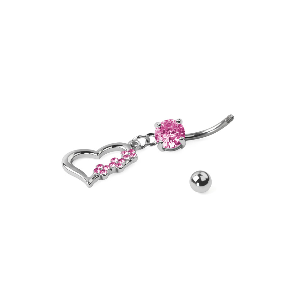 Navn: Navlepiercing av titan med hjerte og sten