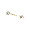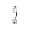 Denne vakre navlepiercingen har en rrund CZ-sten i den nederste kulen, og en mindre kvadratisk anheng som henger fra den øverste kulen. Alle stenene er innfattet.
