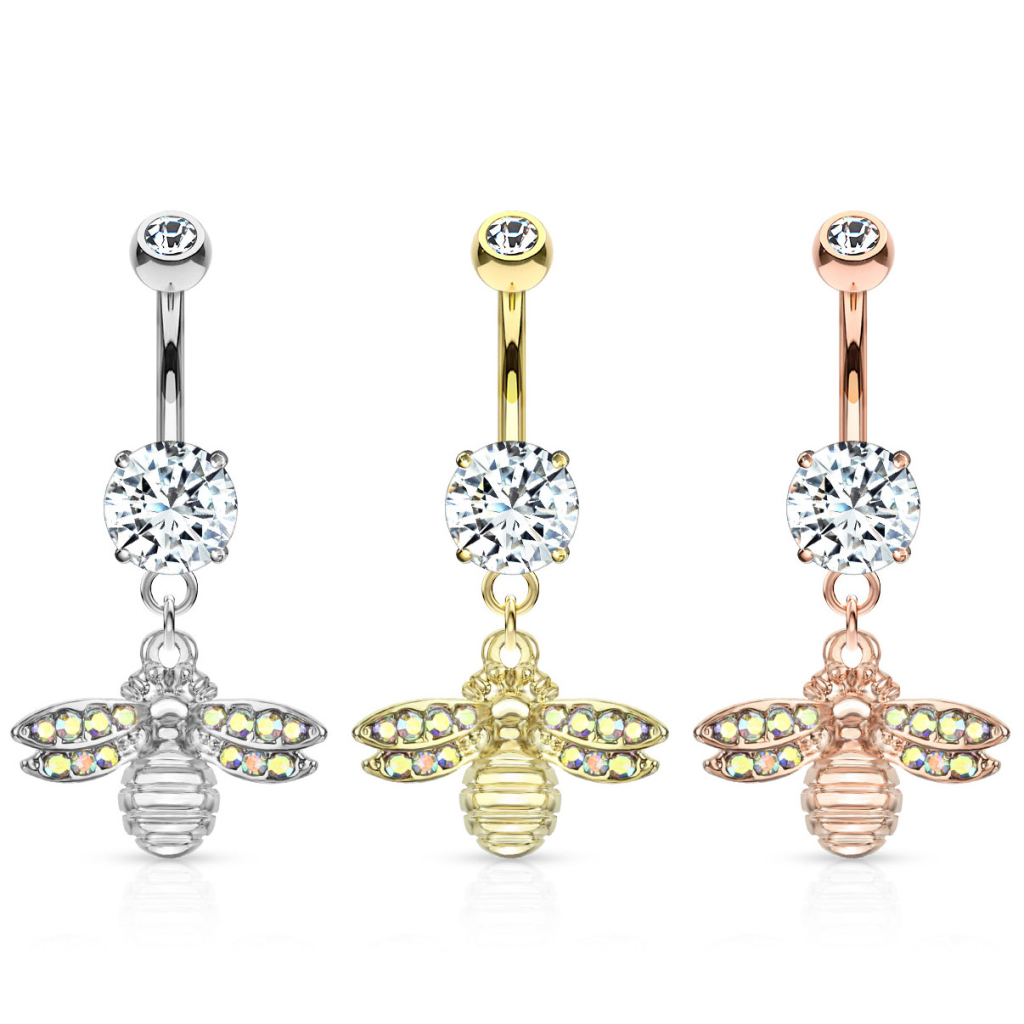 Navn: Navlepiercing med bie i anheng