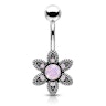 Navlepiercing med blomst og runde stener av opalitt