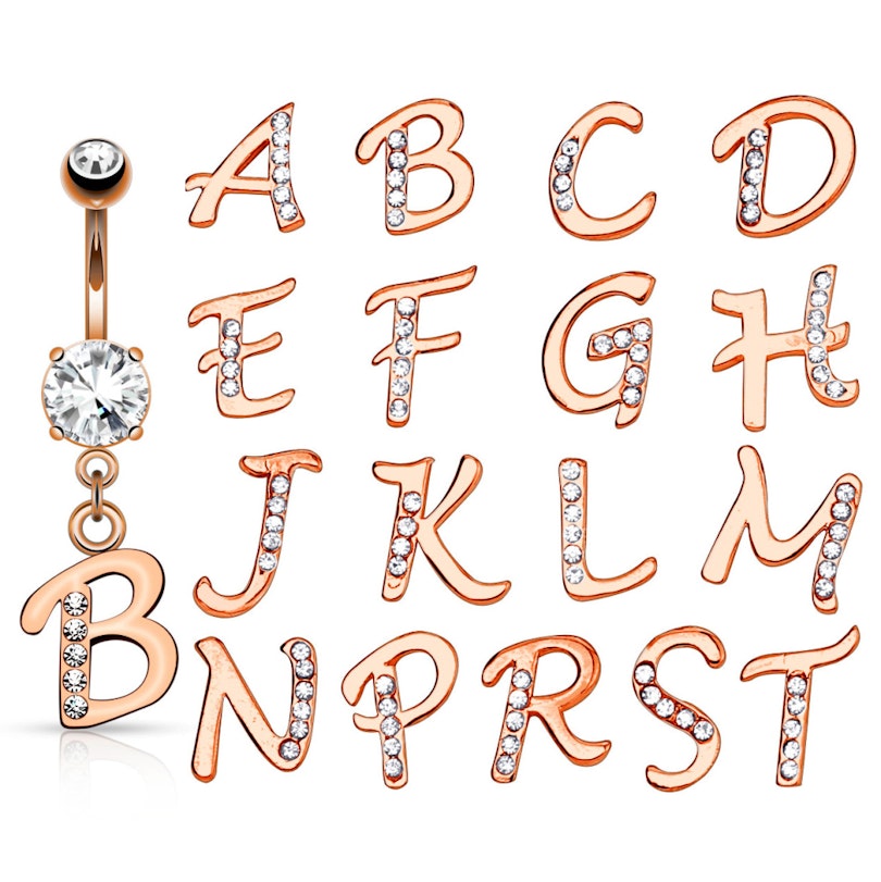 Mange foretrekker at deres kroppsutsmykning skal være personlig - dette gjelder også for piercingsmykker. Her er du så heldig å kunne snappe opp en navlepiercing som virkelig spiller på det personlige. Du har nemlig klikket deg inn på en navlepiercing med en stenbesatt bokstav som anheng. Du kan helt selv velge hvilken bokstav som skal henge i enden av din nye navlepiercing - dette gjør lengre opp på siden.