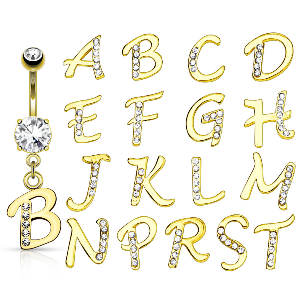 Mange foretrekker at deres kroppsutsmykning skal være personlig - dette gjelder også for piercingsmykker. Her er du så heldig å kunne snappe opp en navlepiercing som virkelig spiller på det personlige. Du har nemlig klikket deg inn på en navlepiercing med en stenbesatt bokstav som anheng. Du kan helt selv velge hvilken bokstav som skal henge i enden av din nye navlepiercing - dette gjør lengre opp på siden.