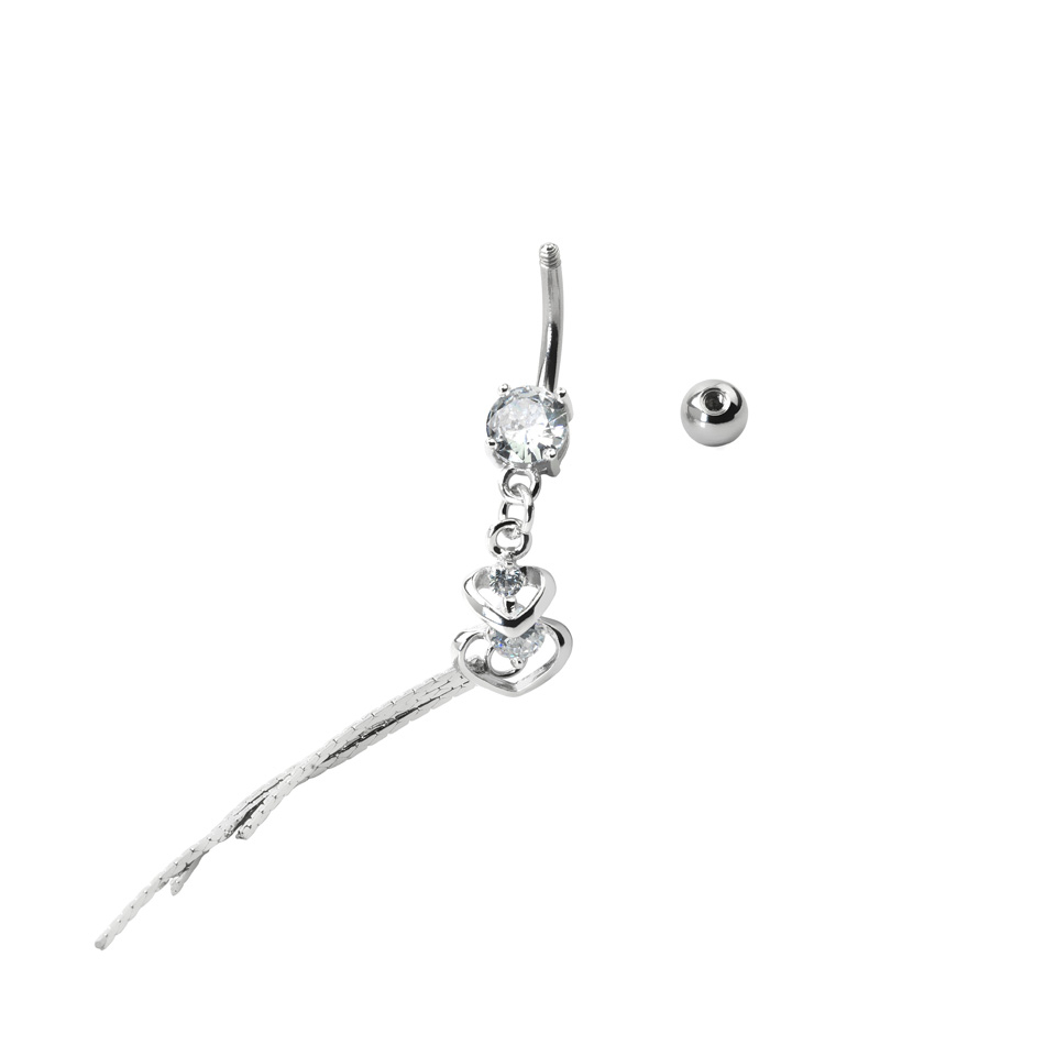 Navn: Navlepiercing med dobbelt hjerteanheng og sten