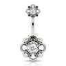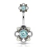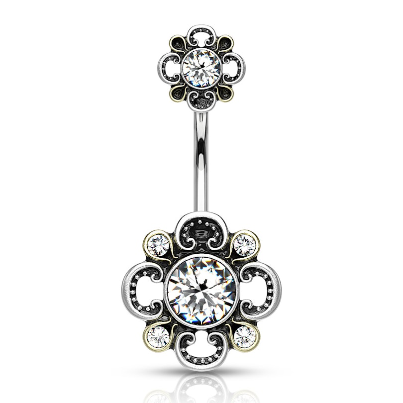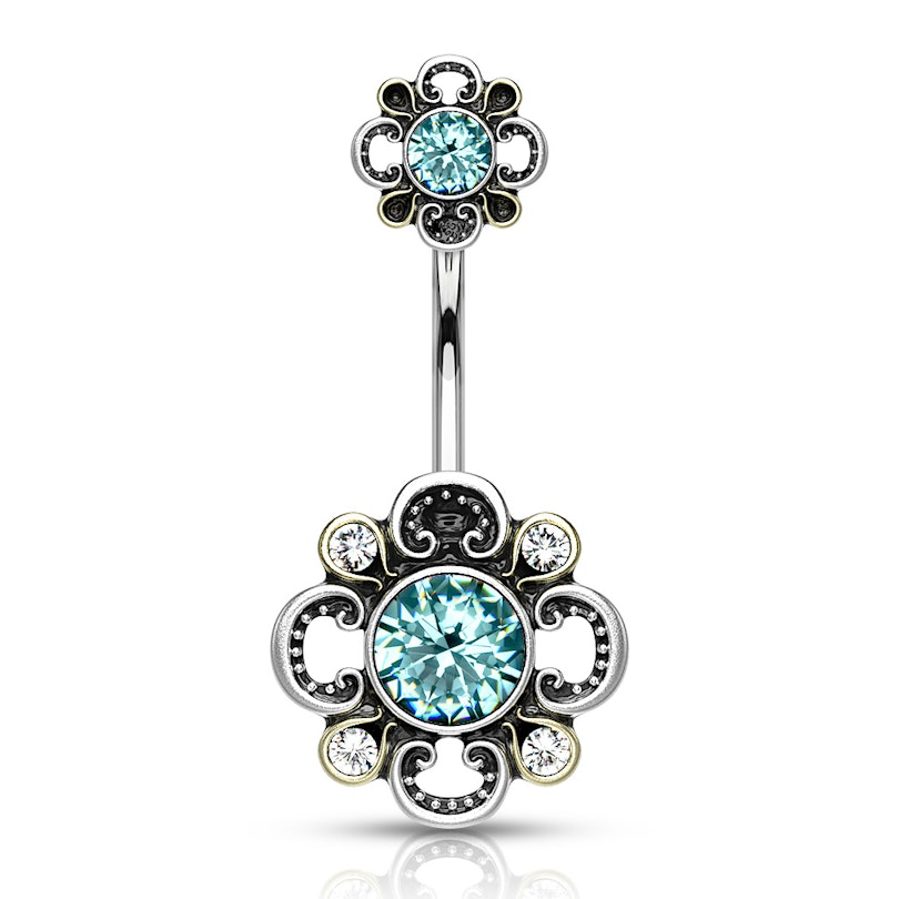 Navn: Navlepiercing med filigranblomst med utstående blader og sten