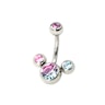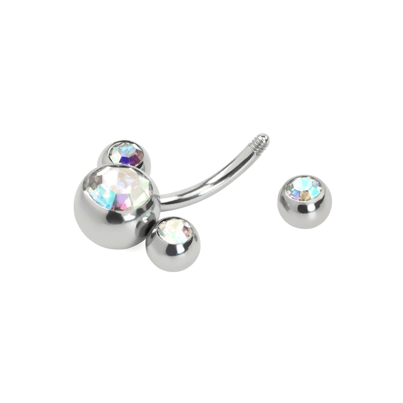 Smykket er utformet som man kjenner det, med en buet stav på 10 mm., hvor det i toppen er en toppkule og i bunnen en bunnkulen. Forskjellen på dette smykket og andre basissmykker er at det er blitt tilføyet to ekstra kuler på bunnkulen. Alle kulene inneholder en sten, som du selv velger fargen på i menyen over.