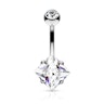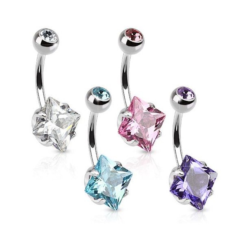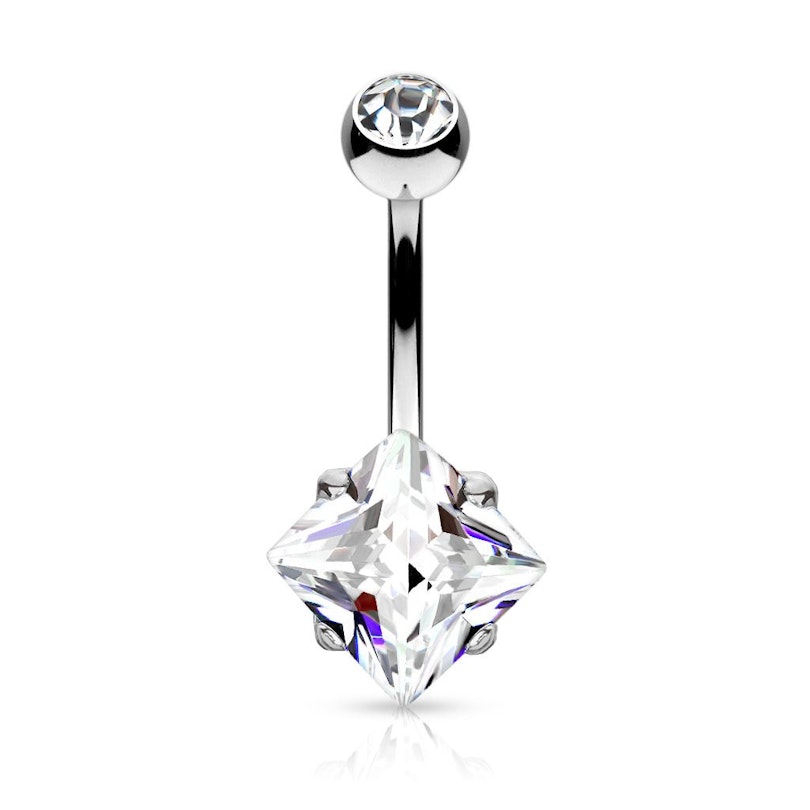 Hvis du er gal etter navlepiercinger som virkelig kan ses og legges merke til, så er denne lekre navlepiercingen kanskje akkurat noe for deg. Smykket her er umiddelbart enkelt i sitt design men skiller seg allikevel ut med sin store flotte firkantede sten som utgjør selve bunnkulen.