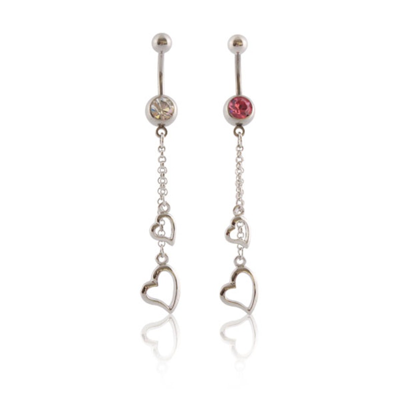 Piercingsmykket har to hjerter i hver sin størrelse hengende fra et lite kjede, som er fastsittende på bunnkulen.
