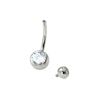 Smykket her skiller seg dog også litt ut fra normen, da denne navlepiercingen er forsynt med et innvendig skruegjenge. Det betyr at selve gjenget sitter på innsiden av staven, frem for utenpå. Skruegjenget kommer derfor aldri i kontakt med din hud, og du risikerer derfor ikke små napp eller nykk i huden når du setter smykket i. Toppkulen er så utstyrt med et lite gjenge som stikker ut, og som settes ned i stavens hulrom, hvor kulen skrus fast.