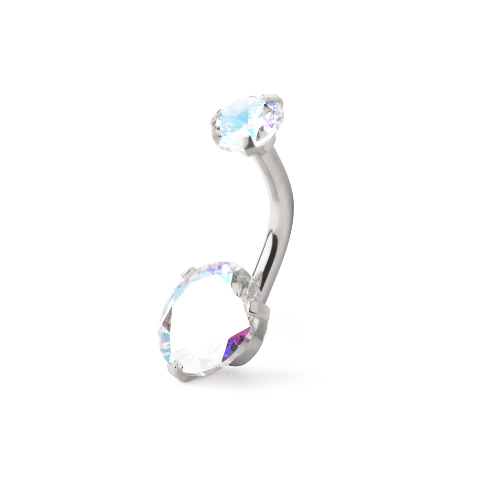 Navn: Navlepiercing med innvending gjenge og flerfarget sten