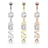 Bli hip, hot og helt uimotståelig flott med denne vakre navlepiercingen som symboliserer selveste kjærligheten. Smykket er nemlig utstyrt med et anheng som består av stener og bokstaver, som tilsammen staver ordet "LOVE" som jo er det engelske ordet for kjærlighet. Her får du altså kjærligheten i rå form, hengende ned fra din navle.