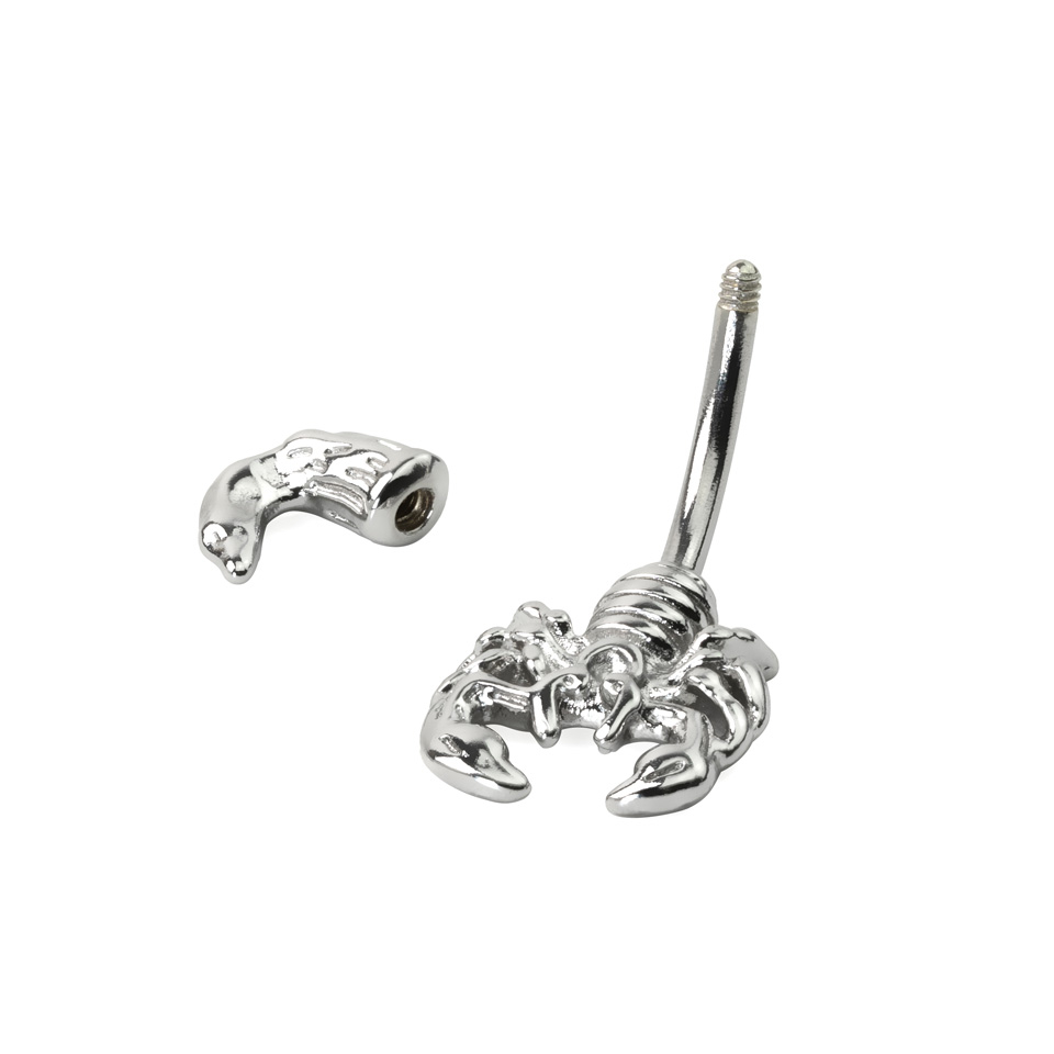 Er du hun som tørr hvor andre tier? Da vil denne ultrafete navlepiercingen med det helt unike motivet av en giftig skorpion, sikkert være noe for deg. Du er sikkert lei av rosa hjerter og annet feminint bling og vil mye heller ha et smykke som utstråler rå styrke og gåpåmot. Hvis du synes det høres ut som deg, så er skorpionen her din venn. Det er en navlepiercing helt uten anheng eller andre løse deler og den egner seg dermed riktig godt til daglig bruk. Den flotte skorpion er veldig detaljert utført og består av to deler som tilsammen utgjør det kraftfulle lille dyret. I steden for en tradisjonell bunnkule har du hele dyrets front med kropp, bein, klør, følehorn og hode, i bunnkulens sted. Designet er som sagt veldig detaljert og det ses enda riller på ryggen av skorpionens kropp.