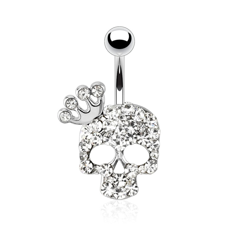 Navn: Navlepiercing med stenbesatt skalle og krone