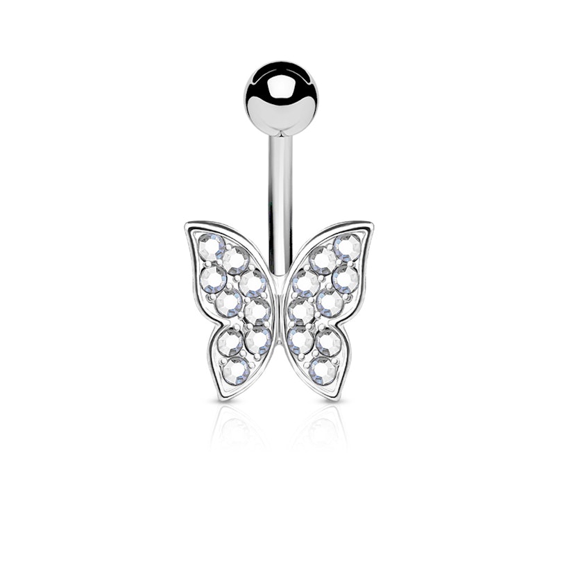 Navn: Navlepiercing med stenbesatt sommerfugl