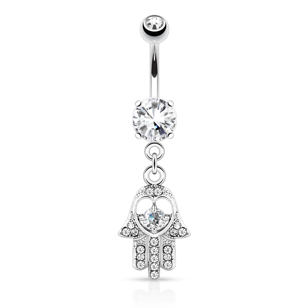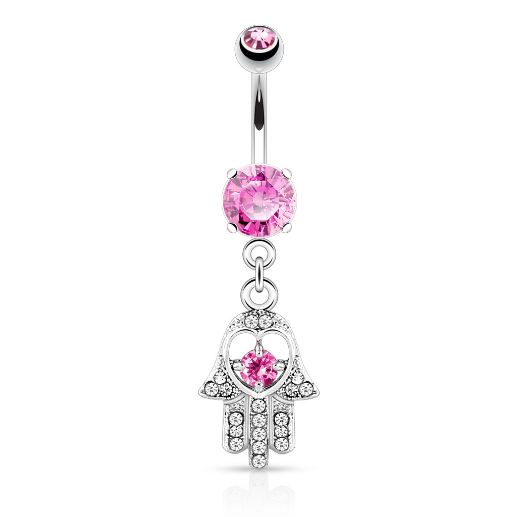 Navlepiercing med stener og hamsa-anheng
