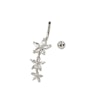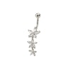 Selve staven er laget av kirurgisk stål og er 10 mm. lang og 1,6 mm. tykk - Nøyaktig som standarden for en navlepiercing er. Toppkulen er 5 mm. bred og har en klar sten i seg som matcher blomstene i anhenget. Metallet som blomstene er festet i er laget av messing og deretter belagt med enten rodium eller gullblad.