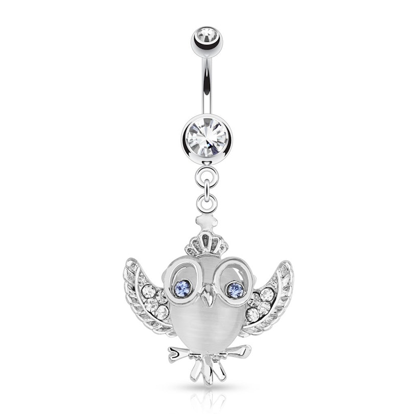 Du finner bare ikke et søtere smykke enn denne yndige navlepiercingen med den søteste lille uglen i anhenget. Den øverste delen av smykket som er laget av kirurgisk stål, består av en 10 mm. stav hvor både topp- og bunnkulen er utstyrt med en flott sten i den av de to fargene du selv velger.
