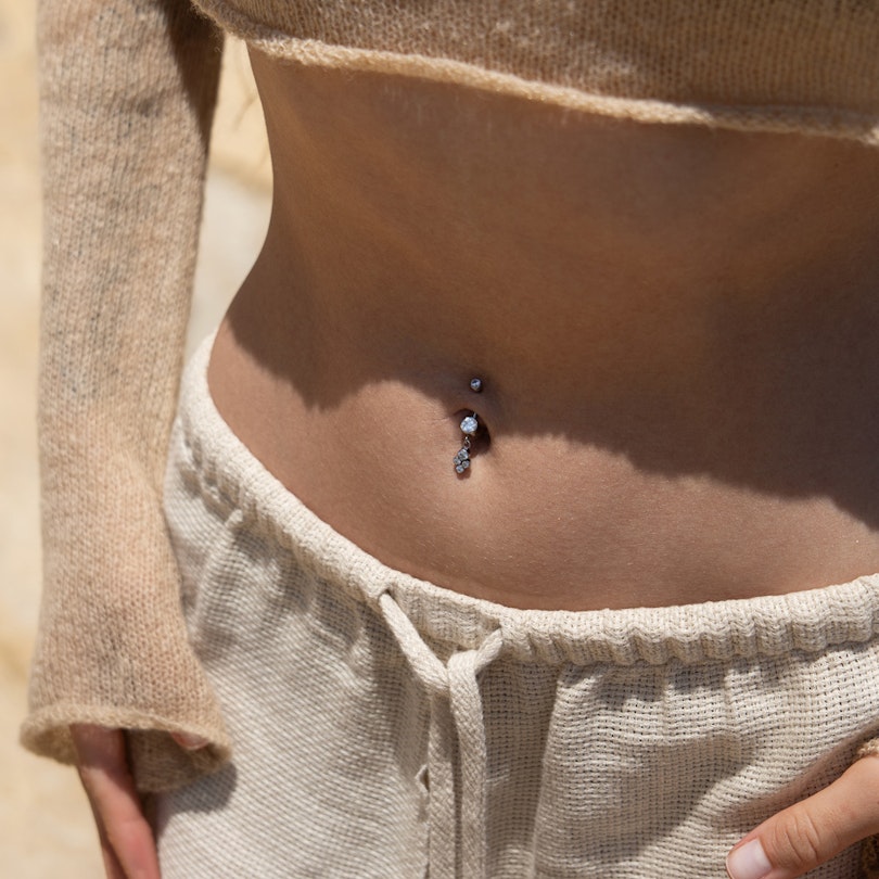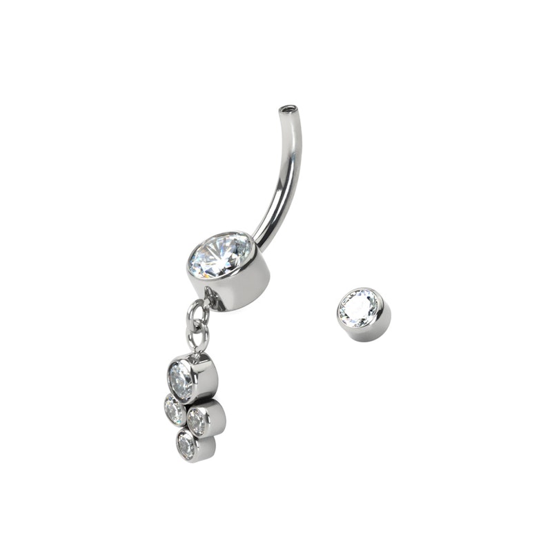 Navn: Navlestav av titan med en dinglende klynge av innfattede stener