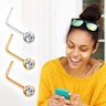 Denne flotte nesepiercingen med den myke bøyen på midten av staven, er en slags mellomting mellom den mer simple nesestaven, og en neseskrue, som skal lirkes litt inn på plass, hvoretter den til gjengjeld sitter kjempegodt fast i nesen. Her får du det beste fra begge verdner, nemlig stavens enkle design som gjør den lett og praktisk å få i og ut, samt tanken bak skruens design, som gir smykket et godt og sikkert grep, så det ikke faller ut.