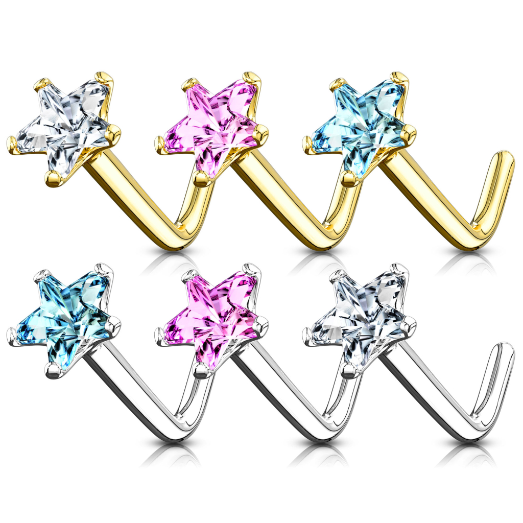 Strål om kapp med stjernene med denne superfine og feminine nesepiercingen, og dens funklende flotte stjernesten. Stenen er skåret med mange flater, så den glitrer og glimter i lyset, fra alle sider og vinkler. Det er den samme type beskjæring som man kjenner fra diamantenes verden. Du kan fritt velge den skjønne stjernestenen i tre forskjellige farger. Du har den klare stjernen til deg som foretrekker den stilrene looken, den rosa stjernen til deg som ikke kan få det feminint nok, eller den turkise stjernen, til deg som elsker den friske og litt kjølige looken.
