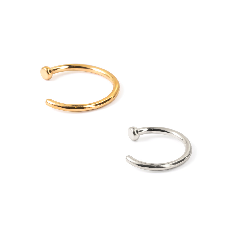 I den ene enden av ringen er en liten "stoppklosse", som skal sørge for at ringen ikke faller ut av nesen. Den andre enden av ringen stopper bratt, men har til gjengjeld fått sin avskjæring avrundet, så man ikke skaper rifter inne i piercingen når man setter den i. Ellers er det helt opp til deg å velge både tykkelsen, farge og diameter på ringen, så ringen passer til nettopp din nesepiercing.