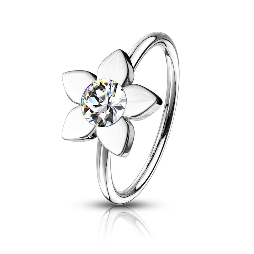 Smykket du har klikket deg inn på er en nesering med en lotusblomst festet på fronten av smykket. Inne i lotusblomsten sitter det en rund sten, som du helt selv kan velge fargen på. Du kan for eksempel få smykket med en rosa eller en rød sten. På toppen av det kan du også velge farge på selve smykket - velg blant annet mellom en gull og en blank variant av smykket. Dermed kan du helt selv sette sammen din beste utgave av smykket. Vi gjør dog oppmerksom på at variantene av gull og rosegull kun er utstyrt med en klar sten.