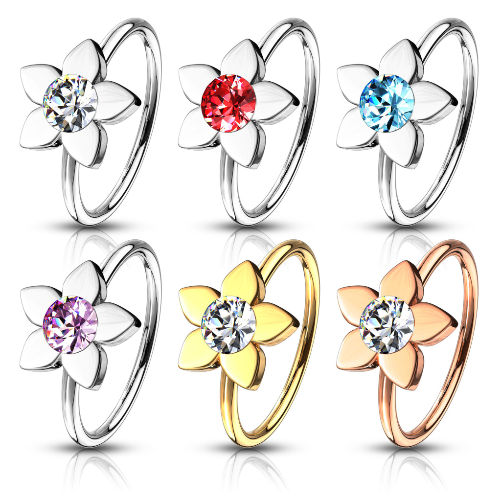 Smykket du har klikket deg inn på er en nesering med en lotusblomst festet på fronten av smykket. Inne i lotusblomsten sitter det en rund sten, som du helt selv kan velge fargen på. Du kan for eksempel få smykket med en rosa eller en rød sten. På toppen av det kan du også velge farge på selve smykket - velg blant annet mellom en gull og en blank variant av smykket. Dermed kan du helt selv sette sammen din beste utgave av smykket. Vi gjør dog oppmerksom på at variantene av gull og rosegull kun er utstyrt med en klar sten.