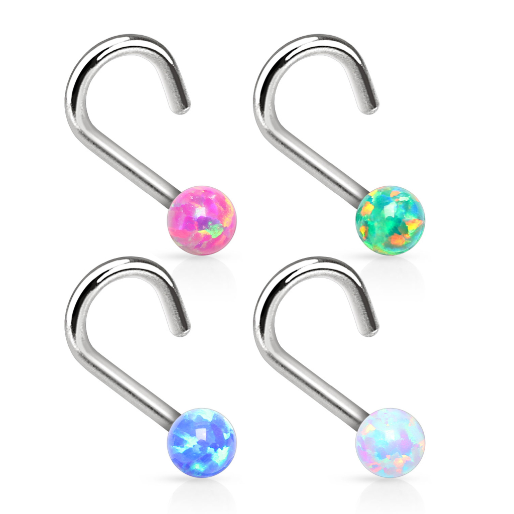 Her kan du få en praktisk neseskrue med en virkelig vakker opalsten som med sikkerhet vil vekke en masse positiv oppmerksomhet. Den lille opalstenen på 2 mm. er kulerund og kan fås i fire friske varianter, nemlig hvit, rosa, blå samt grønn. Hver sten er unik og ikke to stener vil være helt like, idet de er hentet direkte fra naturen. Opal sies dessuten å ha visse egenskaper slik som fremmelse av inspirasjon, indre fred og kjærlighet. Så hvis ikke deres vakre utseende er grunn nok til å velge dem, så er det også massevis av andre gode grunne å finne.
