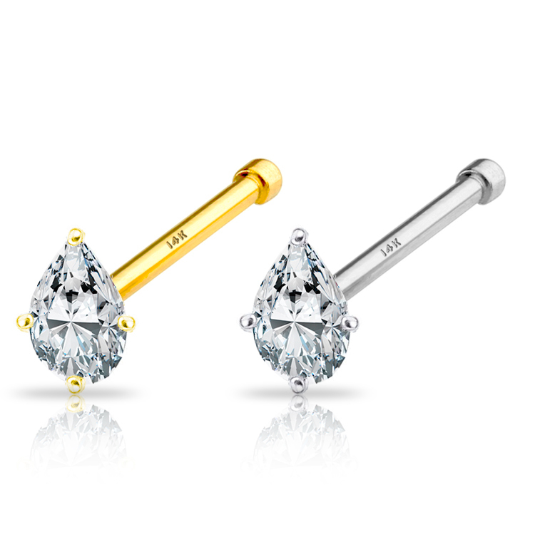 Navn: Nesestav av 14 karat gull med dråpeformet sten