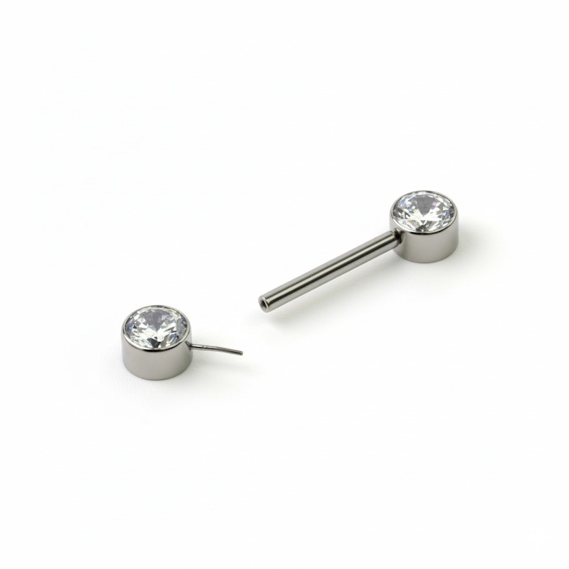 Nipplebarbell laget av titan med gjengeløs push-in med stener