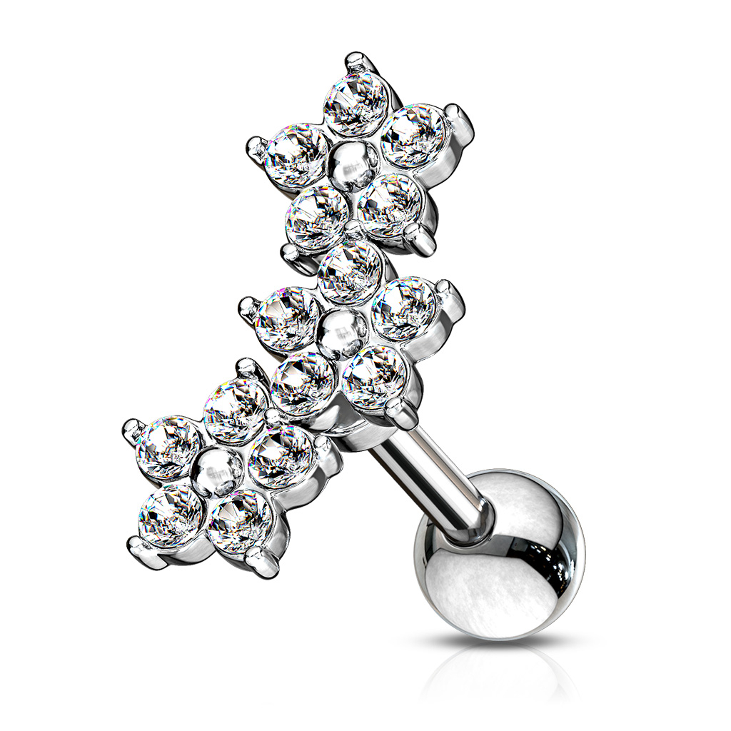 Navn: Ørepiercing med 3 blomster av sten på en rekke