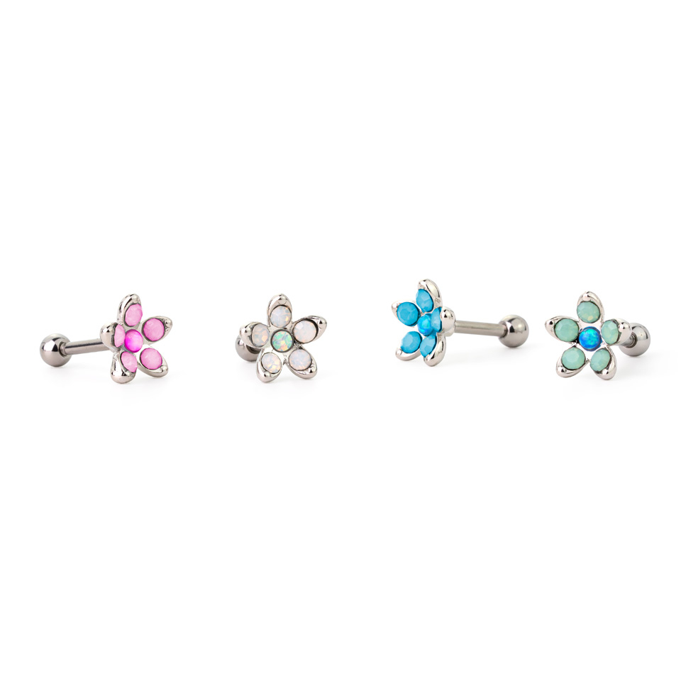 Her får du det beste fra to verdener - selv om de to verdener ligger ganske nært hverandre. Du har nemlig muligheten til å få en ørepiercing med både opalittsten og opal. Så tenker du kanskje, hva er forskjellen? Forskjellen er temmelig tydelig å se i fargen på stenene - opalittstenen er mer melkehvit i fargen, hvor opalen har et større fargespill. Begge disse stenene er syntetiske, hvilket absolutt ikke går ut over utseendet på stenene - det er nesten ikke til å se forskjell. Med dette smykket har du også muligheten til å selv velge fargen på stenene, selvfølgelig ut fra de gitte mulighetene - du kan f.eks. velge rosa eller blå stener.