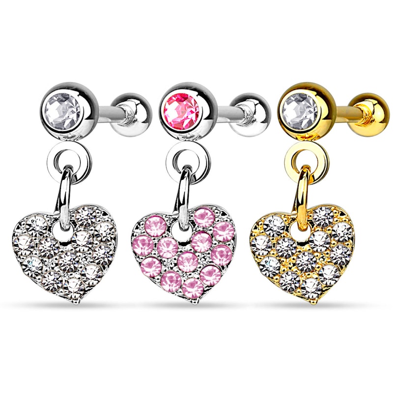 Navn: Ørepiercing med stenbesatt hjerte i anheng