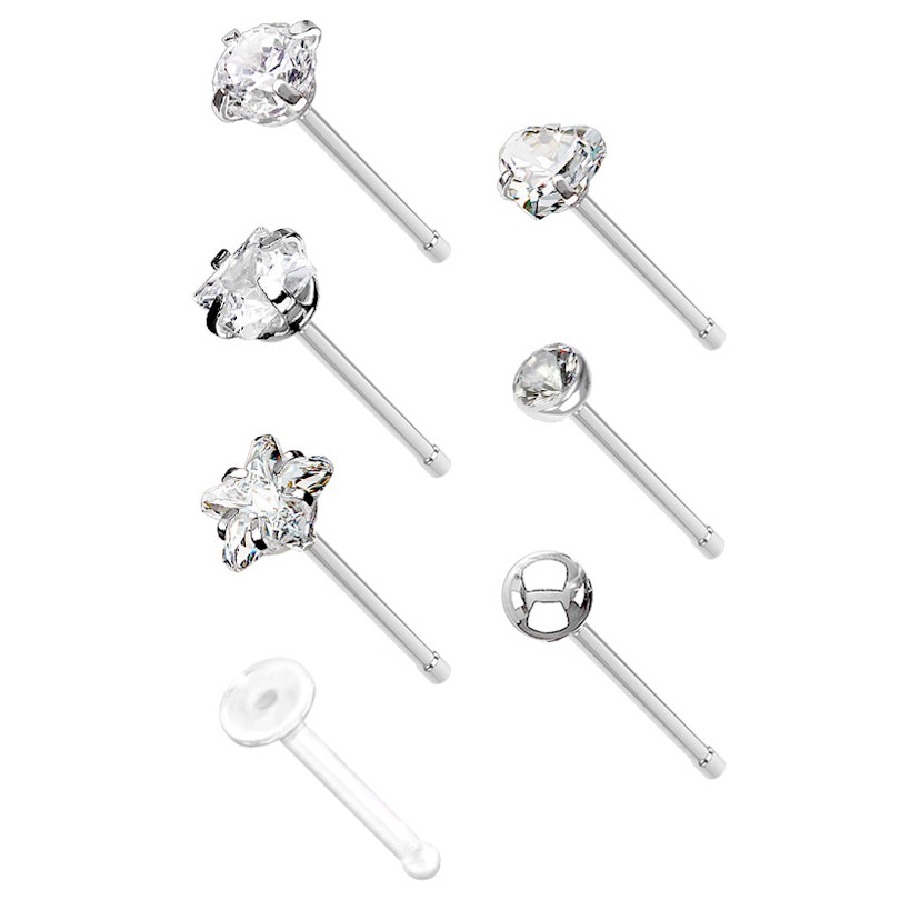 Trenger du en nesestav til hver ukedag? Denne pakken med 7 nesestaver lar deg velge et nytt smykke hver dag. Hver nesestav har sitt eget design. Mangler du en enkel og elegant nesestav, som du kan bruke til familiefrokosten - så er nesestaven med en rund og blank kule perfekt til denne anledningen. Du har også neseretaineren til mandagsmøtet mens sjefen, som ikke godtar piercinger på arbeidsplassen. Trengler du noe mer ekslusivt, så kan du bruke nesestaven med hjerte- og stjerneformet sten. Du kan også bruke nesestaven med en rund sten, eller nesestaven med en firkantet sten. Der er mange valgmuligheter, for eksempel nesestaven med en halvkule, hvor det er påsatt en klar sten - denne nesestaven passer til enhver anledning.