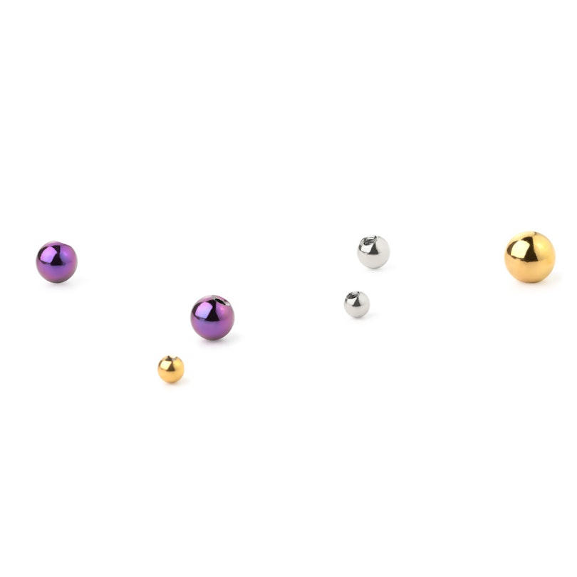 Disse utrolig flotte piercingkulene er alle laget i massiv kirurgisk stål men er belagt med et tynt lag farget titanium ved hjelp av en prosess kalt anodisering.