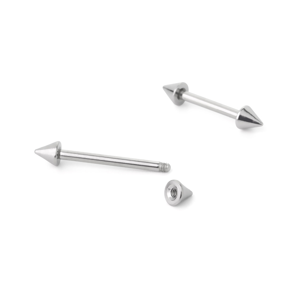 Du kan bruke denne lekre piercingstaven med spikes mange forskjellige steder. Den kunne f.eks. se litt frekk ut i brystpiercinger, og flere former for intimpiercinger. Modellen fås i mange forskjellige trådtykkelser og lengder, samt med mulighet for selv å velge størrelsen på de kjekke piggene.